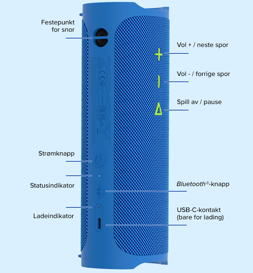 Høyttaleren veier bare 570g, og den lave vekten og det elegante designet gjør at du enkelt får plass til den i for eksempel ryggsekken eller sykkelens flaskeholder. Sett den på plass, og legg i vei!